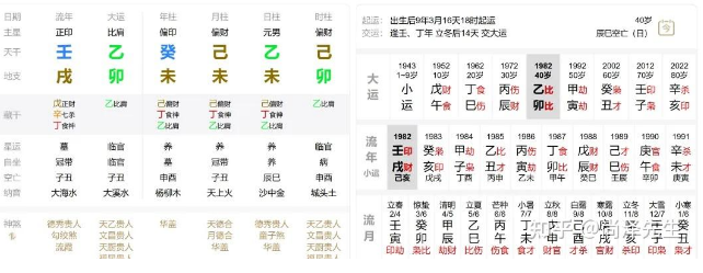 但是1982年开始走到乙卯、甲寅两步大运,非常有利于自己,日主根强气壮,形成了身财两旺的局面,正好这20年又赶上了改革开放的好时机,日主下海经商,赚的是盆满钵满,身家十几亿。